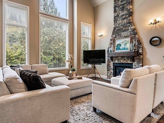 Peaceful, serene location next to the Falls Golf Course w/ easy highway access and walking distance to Unity Christian School. UNIQUE layout w/ PRIMARY and 2nd bedroom on main + 1 bdrm UP w/ flex room and a walkout STUNNNING 3 bdrm basement suite! Whoa! A layout designed for comfortable multigenerational living w/ equal quality finished top to bottom! Triple wide driveway with RV spot and additional side parking near the suite entrance for easy access. Open concept living w/ vaulted ceilings, rock faced floor to ceiling fireplace, Eng HW floors, stone countertops, and high end SS appliances - THE WORKS!! Not to mention, AC, DBL car garage, and a large fenced yard w/ AMPLE privacy - PERFECT for entertaining! Experience elevated living at its finest — this is where luxury feels like home.