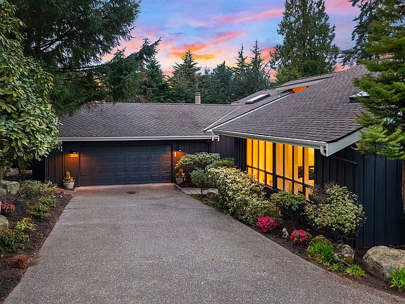 SUBLIME NORTH END CONTEMPORARY with 50-feet of shared waterfront and moorage on Mercer Park Lane. This extremely private home fits like a glove. An ideal setting that invokes privacy, this dramatic 70s design celebrates modernity and the Pacific Northwest with showcase windows that capture surroundings beautifully. Enchanting lake and city views from nearly every room in this open floorplan with four beds and two baths upstairs. Beautifully appointed level entry offers an easy lifestyle among rich community surroundings. Stroll to Luther Burbank Park, village shops, coffee, grocery, diners, and wine bars. The shimmering lights of Lake Washington and Bellevue offer the perfect backdrop for you and your guests to enjoy!
