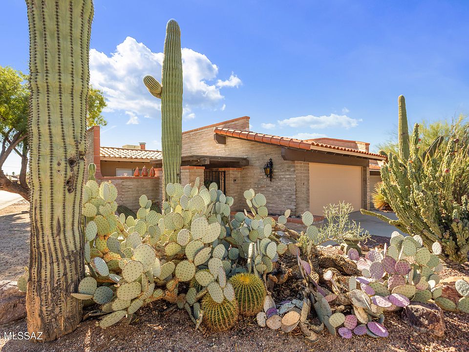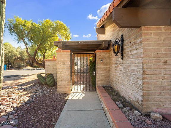 Beautifully crafted burnt-adobe home in Northwest Tucson offering timeless Southwestern character and a comfortable single-level layout. This 3-bedroom, 2-bath residence features a spacious living area with a gas fireplace, large ceramic tile floors throughout, and an inviting eat-in kitchen with ample storage and newer appliances. The generous primary suite includes a walk-in closet and private bath. Enjoy low-maintenance desert landscaping, a covered patio, and a walled backyard ideal for outdoor living. Located in a well-kept community with mature foliage and access to a pool, spa, and tennis courts, this home blends classic adobe construction with everyday functionality in a peaceful, convenient setting. Community amenities include a resort-style swimming pool and expansive lounge area, desert-scaped walking paths and common grounds maintained by the HOA, and a quiet, low-maintenance neighborhood setting just minutes from local restaurants, retail and services.