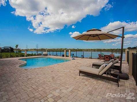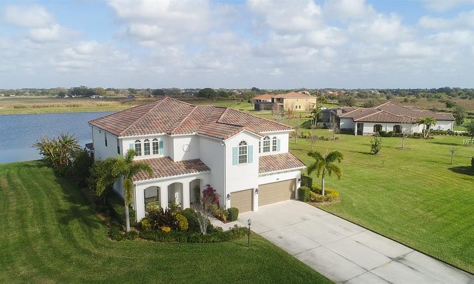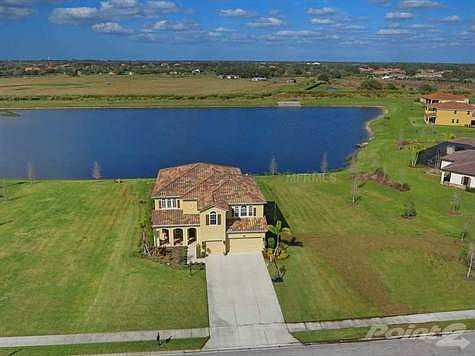 Plenty of space inside and out. This bright, spacious, two-story 4,574 sq. ft. (under air) home with five bedrooms (four with ensuite baths) and four-and-a-half baths sits on more than an acre of land. Enter through an impressive foyer with 20-ft ceilings. A huge bonus room is on the second floor -- perfect for a play area or media room. Generous sized open concept living with a chef's dream kitchen, breakfast area and family room combination. The gourmet kitchen has a big center island and separate breakfast bar. Stainless steel appliances, granite countertops, dual built-in convection ovens and microwave, cooktop with center feature wood vent hood, crown molding and decorative backsplash. Beautifully appointed master suite with dual walk-in closets, garden tub, enormous tiled shower, double sinks and upgraded fixtures. With plenty of storage throughout and an extended three car garage, there is room for everything. Outdoor living features a screened lanai next to a beautiful 24-ft x 36-ft saltwater pool all surrounded by a 50-ft x 64-ft patio that's ideal for entertaining. Enjoy amazing sunsets and plentiful wildlife in the backyard overlooking a 25-acre spring-fed lake that's full of fish and navigable by canoe, kayak, or electric motor boat (no gas engines). This home is perfect for easy country living yet close to town. There are only 13 houses in the private Regent Lakes subdivision. A-rated Tatum Ridge Elementary and I-75 are a short drive.
