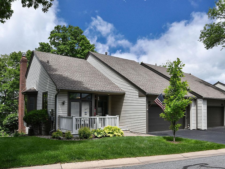 *Gorgeous One Level Living End Unit Townhome/Twin Home in High Demand Rice Lake Ridge Community w/private views of Rice Lake*Nice kitchen w/tile floors & New SS Appliances that steps out to maintenance free deck*Dramatic Vaulted Ceiling on Main level dining & living room w/hand hewn hardwood flooring & gas fireplace*Step out to your beautiful front porch with 9'-0" ceilings & many windows for natural lighting including awning windows!*Main Floor Primary Owner's Suite w/office, access to porch, lake views, walk-in shower & separate soaker tub*Additional 3/4 bath on main*Walkout Lower Level has Large Family Room w/gas fireplace that walks out to large patio, 2 bedrooms, 3rd bedroom has w-i closet & additional 3/4 bathroom*Large Storage Room*Large Laundry Room LL w/utility sink*200 AMP ELEC Service*2 car attached garage w/extra guest parking close by*Freshly Painted Throughout*NEW A/C*Newer Roof*New W/H*Close to Elm Creek Trail Access*Association has access to slip to canoe to Rice Lake*