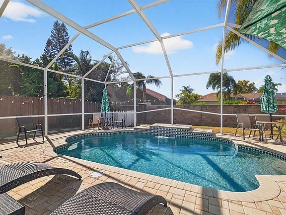 Screened-in poolShaker-style cabinetryRemodeled with granite countertopsPrivate backyard retreatTranquil waterfall featurePaver patioOpen-concept layout