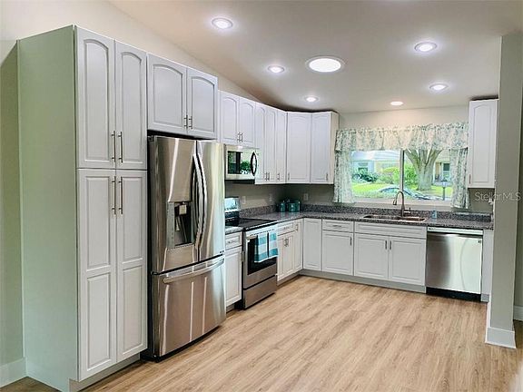 OMG! Don't miss this one. Completely remodeled and move-in ready. Open concept floor plan. New Pergo flooring. High efficiency windows with Low-E glass. New HVAC 16 seer (2020), roof 2010. One and 1/2 Car Garage. Custom kitchen cabinets with granite counters and pantry. Stainless steel appliances, split bedroom plan. Popcorn ceilings removed. Updated lighting and ceiling fans with remotes. Two solar tubes, privacy garage screen, covered patio area for grilling. Oversized lanai. End unit and SUPER back yard with lots of privacy. This is the home you have been looking for with all the amenities that OTOW offers - golf cart access to shopping centers, clubhouse and pools, dog park and many other amenities.