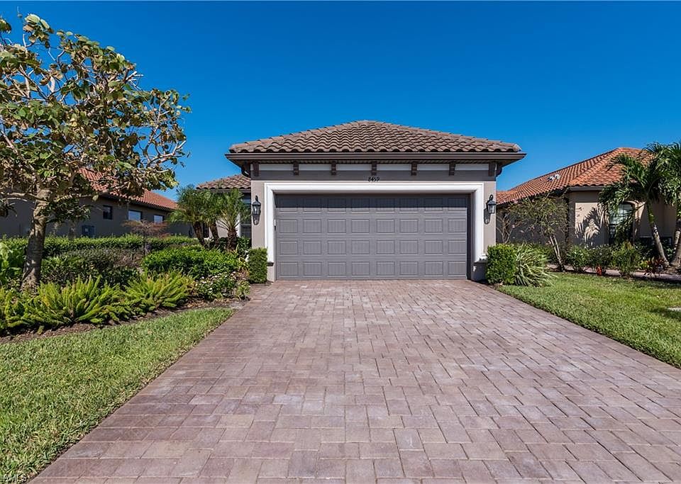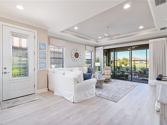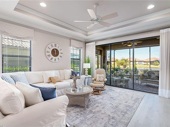 Live where you vacation! Come down to the warmth and tranquility of this Lakefront Beauty that shows like a model!! This furnished 2 plus den single family home with a beachy flair, is sure to delight!! Hacienda Lakes is a popular gated Taylor Morrison community with top Amenities that are only a short stroll down the street! The abundant amenities include an on-site social director, a resort style pool w/ lap lanes, a resistance pool, spa, tennis and pickleball courts, bocce ball, upscale gym facility and a large indoor movement room with a variety of fitness classes. Enjoy the welcoming fire pit , outdoor grilling area ,children's playground and the friendly neighborhood dog park. This home is 4 years new with concrete block construction that NEVER lost power during the hurricane ! A safe community with a location that is convenient to I75, the hospital, Publix shopping center, restaurants and to downtown Naples. New construction underway at the entrance of this community, The new Hammock Park Center will include new restaurants and boutique shops to be completed in 2023. The kitchen boasts newer stainless steel appliances, natural gas, attractive cabinetry, gorgeous counter tops, a tile roof, and storm smart hurricane shutters .Custom draperies and window coverings, and also a pull down attic stairs with extras storage in your epoxy finished garage! This lovely home is extremely well maintained and is a true gem to call your own!
