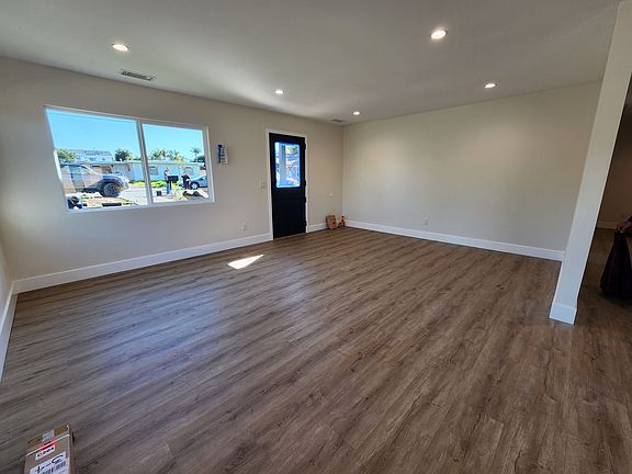 3br/2ba home has been beautifully & completely remodeled in 2023. Vinyl plank flooring throughout with all new paint, windows, blinds, ceiling fans, baseboards, doors and hardware. Kitchen is stunning with white shaker cabinets, SS appliances and endless quartz counters. Lots of cabinet storage! A French door leads out to the nice sized, fenced in backyard patio with grass and landscaping maintained by gardener. The Primary bedroom is large with sliders out to the back yard and its own spa like bathroom with double sinks , a walk in closet, and a beautiful walk in shower. There are 2 other bedrooms and a gorgeous guest bath as well. This unit comes with full sized stacked front loader washer/dryer and storage nearby. 1 car garage with 2 tandem spaces in the driveway. Tenants will pay their portion of water/trash/sewer, but each unit will have their own separate meter for electric. Located off of Leucadia Blvd, just a short distance from the 5 freeway and only about 1 mile from the beach. Close to shopping and dining. This is more than just a rental, it is a gorgeous place to call home. This unit has a JR ADU attached to the backside with its own separate entrance and yard & another detached ADU at the very back of the large lot. Privacy fencing between all units to give a private backyard.