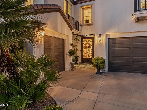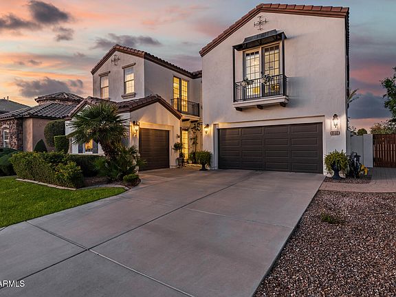 Waterfront lot in McQueen Lakes with Chandler schools. Trend Home with an A+ lot and great layout. Chef's kitchen with 8-burner gas cooktop, 3 ovens, KitchenAid stainless appliances, pull-out cabinets, and crown molding. Wet bar with ice maker and dual coolers. Three interior gas fireplaces, wood flooring, Anderson windows, and central vac. Spacious master suite with two fireplaces, retreat, balcony, his and her closets, and jacuzzi tub. Heated pool and spa with newer pump motor, built-in BBQ, exterior café lights, storage shed, Trane AC units, garage cabinets, and a loft. Perfect South Chandler location close to parks, dining, and shopping.