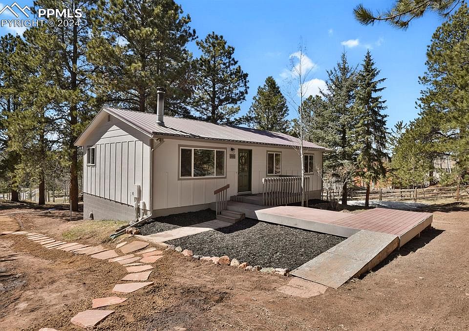 This remodeled and move-in-ready home in the desirable Woodland Park Forest Edge neighborhood. It offers an ideal blend of comfort and convenience. With all-new windows, carpeting, luxury vinyl plank flooring, interior and exterior paint, and remodeled baths, the kitchen boasts new cabinets, countertops, and stainless steel appliances, creating an inviting space for culinary adventures. The unfinished walk-out basement presents an opportunity to expand the living area and add value to the home over time. Nestled in a quiet neighborhood with minimal traffic, the property sits on a large half-acre lot adorned with trees and offering glimpses of the nearby mountains, providing a serene backdrop for outdoor enjoyment. Conveniently located close to schools, parks, and all the amenities Woodland Park has to offer, this home is perfect for those seeking both tranquility and accessibility in their daily lives.