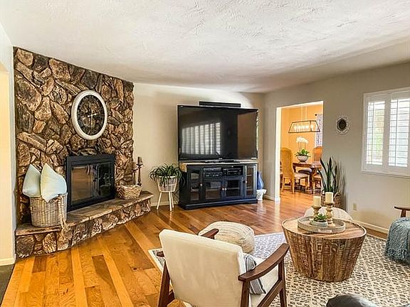 Beautifully maintained 4 bedroom 2.5 bath 2203 sq ft home situated on 1.3 acres of manicured grounds on a quiet cul-de-sac. The living room features a massive wood burning fireplace with stone hearth, hardwood floors and flows effortlessly into the dining room with sliding glass door access to the covered patio. The kitchen has been nicely refreshed with newly painted cabinets, new hardware and fixtures, newly reglazed sink and counter, new Bosch hood range and gas stove top and double oven. There's even a small water heater under the sink. A den/family room off the kitchen adds even more living space. New paint in all of the bedrooms including the master bedroom featuring new shutters, ceiling fan, doors and hardware. Too many details to mention! The grounds are spectacular including a beautiful parklike view from the patio, walking path to the swing under the wisteria, and up to the many out buildings. Everyone's favorite stop is what the seller's like to call "the Dry Creek Mini Barn". So many potential uses for this building and currently being utilized as a 5th guest room. To the right of the Dry Creek Mini Barn is an equipment/tractor shop with barn doors, a chicken coop and 2 green houses. To the left is the 30' X 60' Shop permitted and built in 2017/18, featuring a blue and white epoxy flooring covering 1/4 of the building, a second floor with electricity and motorized hoist, hot water heater, gas lines, electricity, and connectivity for WIFI, built in pneumatic lines inside and outside the shop, a car hoist, and so much more. The grounds include fruit and citrus trees, raised garden beds, 3 different kinds of blackberries, mature oak and pepper trees with automatic sprinklers and drip system. You will not want to miss this incredible opportunity!