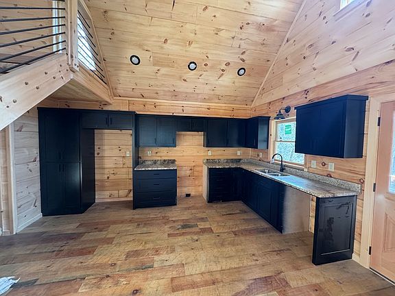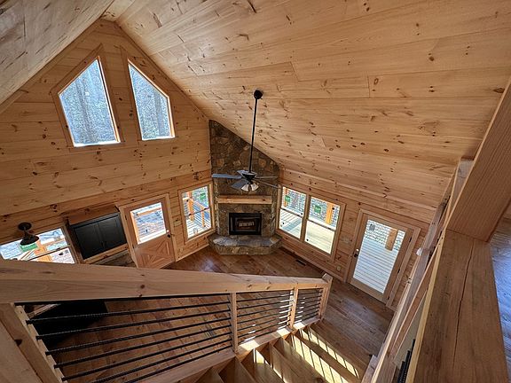 Tucked away atop the mountain, this brand-new true log cabin offers the perfect blend of rustic charm, modern comfort, and unmatched natural surroundings. A paved driveway welcomes you home to a beautifully stained exterior accented with stone, setting the tone for the well known Sisson craftsmanship found throughout. Step onto the covered front porch or the full-length covered deck and take in serene views of the creek below, framed by native mountain laurel. Inside, this cozy cabin lives large with soaring ceilings, exposed wood beams, and an open floor plan designed for both relaxation and entertaining. The great room features a stunning real stone fireplace and flows seamlessly into the kitchen, complete with black cabinetry, granite countertops, and timeless finishes. Black iron railings lead to the upper level, adding texture and enhancing the rustic yet refined design. The main level offers a comfortable bedroom and full bathroom, while the upper level boasts a spacious loft—ideal as a second bedroom, office, or bonus space—along with its own private bathroom. Thoughtful landscaping surrounds the home, blending naturally into the untouched mountain terrain with no grass to maintain. Situated on a 1-acre lot with creek frontage, this property offers direct access to the Benton MacKaye Trail right from the edge of the land—an iconic, rugged footpath stretching nearly 300 miles from Springer Mountain, Georgia to the Great Smoky Mountains National Park in North Carolina. Known for its wilderness feel, steep terrain, and high elevations, it's a dream setting for outdoor enthusiasts. Whether you're seeking a peaceful mountain retreat, an adventure basecamp, or an income-producing getaway, short-term rentals are allowed, making this mountain escape a rare and versatile opportunity. Country living, privacy, and nature—this cabin truly has it all.