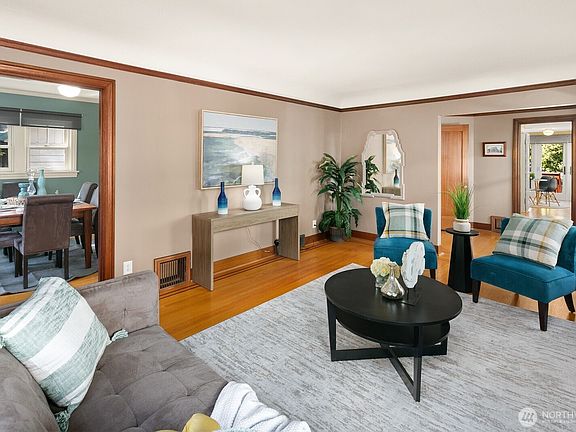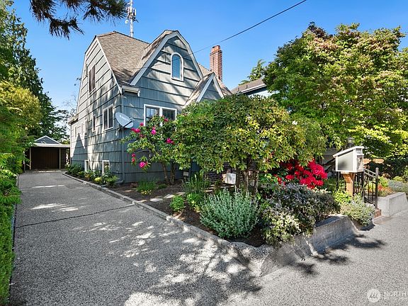 Charming Remodeled Tudor on Expansive Lot - Beautifully updated Tudor featuring hardwood floors, leaded glass, classic fireplace, arched doorways, and exposed woodwork. Cozy kitchen with slab granite and stainless steel appliances. Four spacious bedrooms and two remodeled baths above ground, plus potential in lower level. Large 7,920 sq ft lot with detached garage, two decks (one with Olympics views), garden space, and playhouse. Prime location close to parks, shops, and schools.