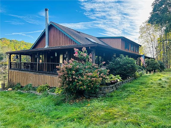 Welcome to your dream retreat nestled in the heart of Franklin, NY! This captivating contemporary rustic home offers the perfect blend of modern amenities and natural beauty, situated on a 28 acres. Step inside to discover a gourmet kitchen that will delight any chef, featuring a 6-burner gas stove, convection oven, and stainless steel refrigerator. The open floor plan seamlessly connects the kitchen to the inviting living room, adorned with charming wood beams, oak wood floors, gas fireplace and cathedral ceilings.