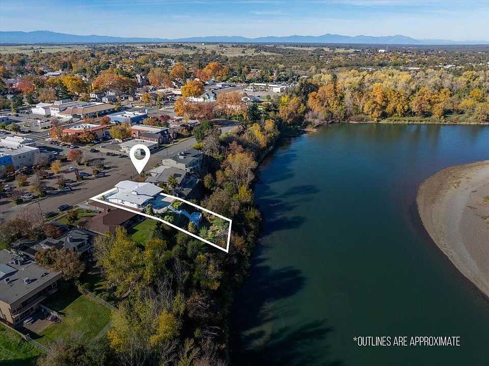 Live on the Sacramento River in downtown Red Bluff. Just steps from shops, dining, and local amenities. This 2282 s.f. split-level home blends mid-century character with peaceful river views. The open entertainers kitchen offers an island with a second sink, and lots of counter space. There are two fireplaces and living and family rooms. French doors and sliding glass doors invite you to the expansive upper and lower patios overlooking the river. With no lawn to maintain, you'll enjoy true low maintenance riverfront living. Stairs take you down to the river's edge for birdwatching and quiet moments, while an enclosed front patio adds even more useable outdoor space, This is truly a great place for relaxing, entertaining, or creating a riverfront retreat your guests will never forget.