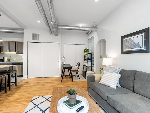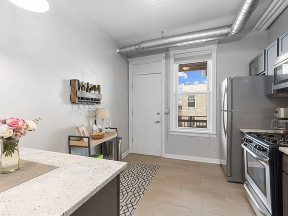 November 15. High first floor. Move into this fun rehab with a HUGE DECK, exposed ductwork, washer/dryer in unit, rehabbed bathroom, hardwood floors, new windows, tankless water heater, furnace and central air, newer kitchen, and stainless appliances. Bedroom fits a Queen bed. Super close to el, bus, Wrigley, coffee, and all types of dining. Move In 500/adult. No security deposit. Sorry- no pets. Photos and floorplan from a similar unit. This unit has incredible natural light. June 1 this unit can renew the lease at $2050.