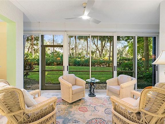 Discover your dream home in the highly sought-after dog-friendly neighborhood of Covington Row in the Crescent. This stunning first floor condo offers a harmonious blend of modern living and serene surroundings perfect for relaxation and entertainment. Key features include spacious living: 3 bedrooms and 2 1/2 baths, providing ample space for family and guests. Each room is designed to maximize light and flow. The screened and glassed lanai overlooks a private rear yard with mature trees, landscaping and the golf course beyond, A perfect spot for a cup of coffee and the morning sunrise. Being offered turnkey furnished, making it ideal for those looking for a hassle-free transition to Naples and Pelican Bay. The updated kitchen features granite countertops and modern stainless appliances. Enjoy a bright, light and open floorplan. Enter your home through the 2-car attached garage- a real plus. Covington Row and the Crescent offer a large attractive swimming pool and spa and a fitness room. Enter your home through the 2-car attached garage- a real plus. Pelican Bay offers 3 miles of pristine, private beach access with 2 restaurants with bars; 2 Tennis Centers; a world class Fitness Center; Pickle Ball courts; canoes, Sunfish, and walking paths.