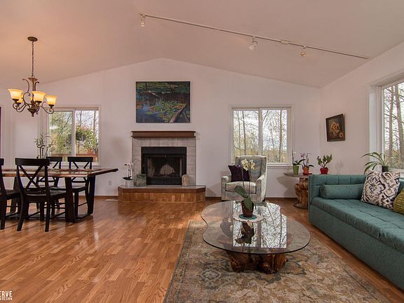 This Unique Home is located at the end a quiet culdesac in south Anchorage. 180 degree views with south & west exposure throughout livingroom and kitchen. Sun on both decks! Vaulted ceilings, Oak cabinets, B/I microwave; cedar siding on exterior; crawlspace is full height! Fresh interior paint. Storage shed in back yard. Very close to Campbell Creek greenbelt trail systems