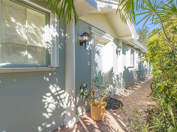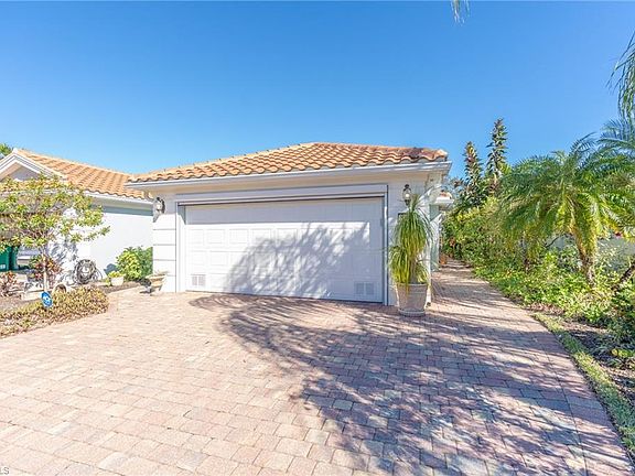 Seated on the end of the court is this furnished, two bedrooms with den/two bath attached, Capri villa in the gated community of VeronaWalk. Lush landscape lines the walk to the glass front door. So many improvements have been added to this home. Shiny laminate wood flooring is found throughout the main living space with neutral carpet in the bedrooms. Rich paint colors line the walls with crown molding wrapping the ceilings. A vaulted ceiling in the entertainment area of the home adds an air of loftiness. Plantation shutters cover the windows. A centrally located white kitchen has stainless appliances, granite counters and tile backsplash. Both baths have updated tile showers with seamless glass doors. Additional upgrades include a newer roof, hot water heater, and newer A/C unit. A bank of sliding glass doors leads to a covered, paver lanai connecting to a screen enclosed custom pool and spa. You can enjoy a water/bridge view and have easy access to the walking path located behind the villa, but plentiful foliage allows for privacy. Windows have accordion storm shutters and the electric version surrounding the lanai.
