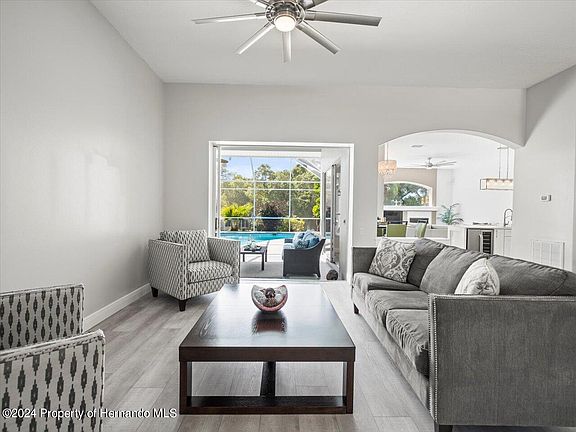 Absolutely stunning 3 Bedroom/3 Bath pool home in the sought after gated community of Glen Lakes. This home has been recently remodeled and is just beautiful. The interior offers an open floorplan that includes both a formal Living room and Family room as well as a formal Dining area and eat in area in the Kitchen. The Primary Suite offers an ensuite Bath with dual sinks and a gorgeous quartz countertop plus a jacuzzi tub, snail shower and large walk-in closet. It also has access to the newly resurfaced screened in pool and patio area that has a new outdoor Kitchen for entertaining. The two guest Bedrooms are situated on the other side of the home, each having a separate bathroom with quartz countertops and new carpet. Luxury vinyl flooring and fresh paint throughout. Your new Kitchen features astonishing quartz countertops, beautiful soft touch wood cabinetry, stainless steel appliances, a wine cooler and a breakfast bar. This space offers tranquil views of your outdoor oasis. Glen Lakes is a wonderful gated, golf course community and the social membership gives access to the clubhouse, restaurant, bar, Jr. Olympic size heated pool/spa, fitness center, clay tennis courts, pickleball courts and a vast array of social clubs. Golf membership and the Social membership are available for purchase. Located just north of the Weeki Wachee Springs State Park with easy access to Publix, healthcare facilities, restaurants and entertainment. With easy highway access, this home offers the perfect blend of luxury, comfort, and convenience for your Florida lifestyle!