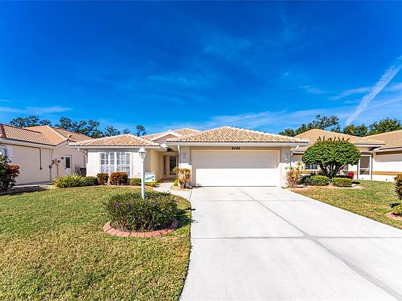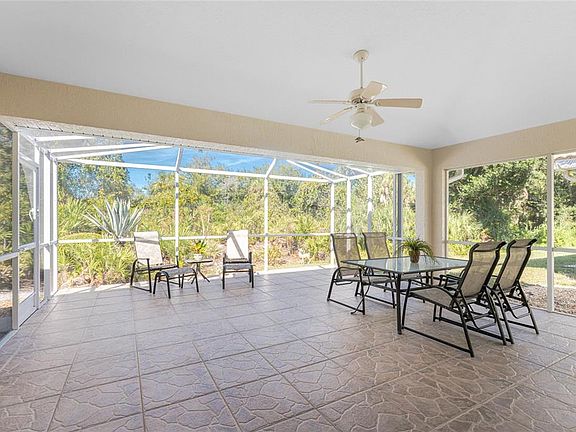 Welcome to 8460 Gateway Court- a beautifully maintained three-bedroom, two-bathroom, two car garage home located in the established highly desirable, guard-gated community of Oyster Creek. Perfect for both snowbirds and year-round residents, this friendly and active neighborhood offers a true Southwest Florida Lifestyle. Beautiful curb appeal greets you with mature tropical landscaping and a new 2023 tile roof. Step through the front door to an open and airy great room featuring high ceilings, neutral tones and easy-care tile flooring. Large sliding doors lead to an oversized, partially covered, fully screened lanai overlooking a tranquil wooded preserve. This serves as an ideal extension of your living space, perfect for relaxing, dining and entertaining. The kitchen was updated in 2023 and features Wood-Made custom cabinetry with soft close hinges and thoughtfully designed cabinets and drawers for the utmost storage space. Other features include granite counter tops, a pantry closet and a raised breakfast bar. A cozy breakfast nook sits just off the kitchen for casual meals. The owner’s suite provides a private retreat separate from the home’s other two bedrooms. It features a tray ceiling, bay window, walk-in closet and has access to the lanai. The en-suite bath, updated 2023, includes a fully tiled walk-in shower, dual sink vanity and a jetted soaking tub. Two bright guest bedrooms and a well-appointed guest bath with a tiled shower-tub combination offer comfortable accommodations for family and visitors. New 2023 vinyl tile flooring in all bedrooms makes for comfort under your feet and easy cleaning. The interior laundry room includes shelving and a utility tub for convenience. Additional updates include a 2024 HVAC system, 2023 interior repainting, including garage, and an irrigation system. Oyster Creek is known for its warm, welcoming atmosphere and its appeal to both seasonal and full-time residents. The golf-cart friendly roads and wide variety of amenities make it easy to stay active and connected. Enjoy the executive golf course (optional membership), clubhouse, heated community pool, hot tub, pickleball and tennis courts, bocce, fitness room, library and full calendar of social events. The location couldn’t be better, close to shopping, popular Englewood dining and Englewood Beach is less than a ten-minute drive. The Ann and Chuck Dever Regional Park is nearby with walking trails, sports facilities, a Paw Park and convenient access to Englewood and Manasota Key beaches. Oyster Creek offers comfortable and friendly Florida living situated about halfway between Sarasota and Ft. Myers. This is a truly great place to live where neighbors know each other and are often seen walking together in the community or riding in their golf carts. This home shows wonderful pride of ownership with a multitude of updates. Furniture conveys for an easy and quick move in. Come take a look!