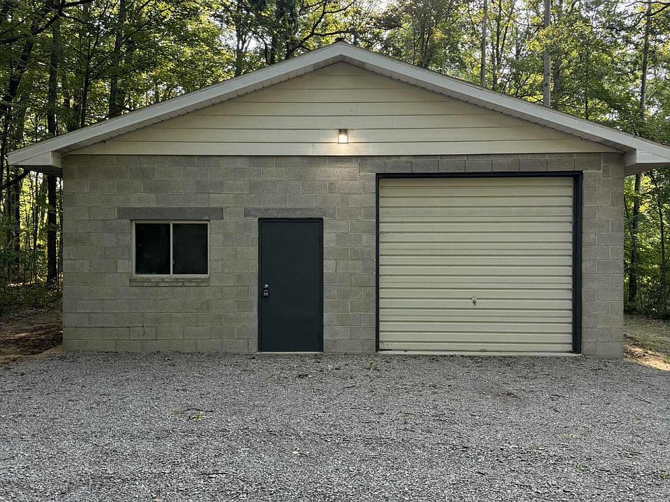 Higgins Lake Garage Lot - Perfect Up North Storage! Looking for a place to store your boat, side-by-side, golf cart, or snowmobiles near Higgins Lake. Look no further! This 28' x 36' garage sits on a spacious lot and offers everything you need for storage and more. Key features include: New 200-amp service with URD feed from utility. Well with an outdoor spigot - great for cleaning your toys; Septic system on site; Cinder block building with a full bathroom (ready for repair) Bonus room ideal for storage or an office; Heater available - just needs to be hooked up; New limestone driveway for easy access; Plenty of room to build your Up North cottage while keeping your recreational gear secure and organized. A rare opportunity this close to Higgins Lake! 1.9 miles to the DNR W Higgins Lak