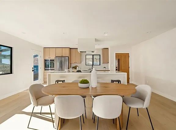 Nestled in the sought-after Glencrest Hills neighborhood, this stunningly remodeled 3-bedroom, 2-bathroom home offers a spacious 1,538 square feet of sophisticated living space on an expansive 8,383 square foot lot. As you step inside, youll be greeted by beautiful white oak hardwood floors that flow seamlessly throughout the home, enhancing its open and airy feel. The living room features a unique lime wash finish on the walls, which creates a warm and inviting atmosphere that is perfect for relaxation or entertaining. The gourmet kitchen is truly a chefs dream, showcasing new white oak cabinets that offer ample storage, premium quartz countertops that provide a stunning visual contrast, and top-of-the-line Samsung appliances that make cooking a pleasure. Both bathrooms have been elegantly transformed with luxurious plaster walls that add a touch of sophistication to your daily routines. The modern fixtures and finishes create a spa-like ambiance, while a new air conditioning system ensures year-round comfort. Additionally, the home is equipped with a tankless water heater, providing endless hot water while maximizing energy efficiency. Every inch of this residence has been updated, beginning with a brand-new roof, upgraded plumbing, new HVAC, and updated electrical system that ensures peace of mind for years to come. The exterior is equally impressive, featuring a smooth stucco finish that adds to the homes curb appeal. A brand-new garage complements the property, offering both convenience and additional storage options. For outdoor living, the multi-sliding patio door op