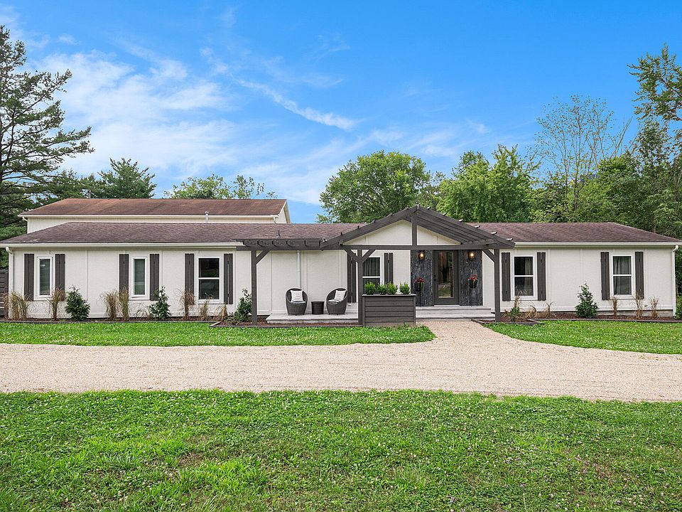 Big backyard with lots of trees surrounding your perfect getaway!This beautifully updated 5-bedroom ,3-bathroom ranch home is ideal as a second home or lucrative short -term rental a perfect full time residence.It also be offered as a turnkey option.The open-concept design features brand-new floors ,windows and doors plus a modern kitchen with a cozy gas fireplace.The primary suite boasts an en-suite bath and a private deck for peaceful relaxation.Step outside to a spacious deck-perfect for gatherings or enjoying quiet morning coffee.Set on 2 acres ,the property offers endless possibilities ,including a large POLE BARN ready to be transformed into a boat store space ,hobby workshop ,playroom or party retreat.Listing agent is the owner of the house.