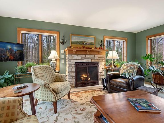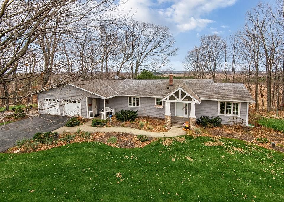 This rare 3 bedroom home boasts curbside appeal while perched upon a ridge allowing for magnificent pastoral views. A new walk-in tiled shower with heated bathroom tile floors, a remodeled kitchen with granite countertops, and hardwood flooring are just a few features to enjoy. The property is situated on over 11 acres with picture-perfect perennial gardens and several lovely outdoor water features; including a pond and a fountain! A large pole/mini barn(with its own private driveway and separate well) allows for a hobby farm or other storage needs. Well taken care of inside and out. Property abuts Door County Land Trust property to the east.
