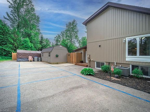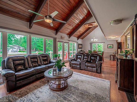 Stunning 4 bedroom, 2 full bathroom waterfront home with inground pool, nestled on a beautiful lot with 100 feet of prime frontage, this charming 1 1/2 story, 4 season home offers a rare blend of comfort, luxury, and outdoor living. Perfectly situated with 15 feet of deeded waterfront access, this property is a true haven for those who love the water and the outdoors. The year-round dock (shared with 3 otherhomeowners), provides direct access to the river—ideal for boating and fishing. The river goes to the mouth of Lake Huron in Port Franks withbeautiful sunset views! Step inside to find an inviting, open-concept living and dining area featuring soaring vaulted ceilings, providing a spaciousand airy atmosphere. Adjacent to the dining area is the kitchen with centre island and access to the bonus addition at the back of the house Ithas a large pantry with barn doors and a family room, currently set up as a bar and party room. This leads to a bright and sunny sunroom anddirect access to the fully fenced backyard oasis, complete with an inground pool, cozy firepit and 3 sheds, one of which is oversized and equippedwith Hydro—perfect for storage, a workshop, or a hobby space. Finishing the main level is a large primary bedroom with fireplace and slidingdoors to the sunroom, a 2nd bedroom or den with barn doors off the living room and 4pc main bath with soaker tub and stand alone shower. The2nd floor overlooks the main living space and offers 2 additional bedrooms and a shared bathroom. The home offers a partially finished basement with a cozy rec room or play room. This is an incredible opportunity to own a beautiful waterfront property. Whether you're hosting family gatherings, enjoying the tranquil surroundings, or taking full advantage of the water access, this home provides the perfect backdrop for every season.