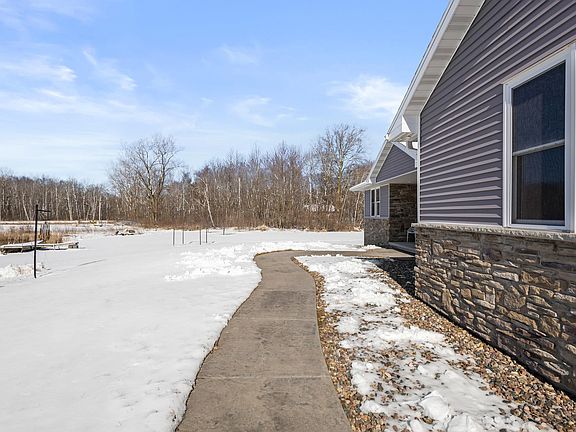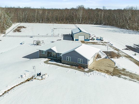 This custom-built 5 bed, 3.5 bath ranch sits on 10 beautiful acres in Pulaski, offering craftsmanship, comfort, and true Wisconsin living. The main level features fresh paint, updated lighting, a home office, first-floor laundry, and a kitchen with custom hickory cabinetry & generous storage. The great room overlooks open countryside and the primary suite includes tray ceilings and dual walk-in closets. The finished lower level adds a family room & game room (exposed floor joists), garage access, plus a safe room and root cellar. The attached garage is insulated and freshly painted. Outside, enjoy a 36x72 pole barn, two stables, fenced-in pastures, and a private pond with aeration and pier. Hunt deer right on your own land and enjoy wide-open space built for work, recreation, and privacy.