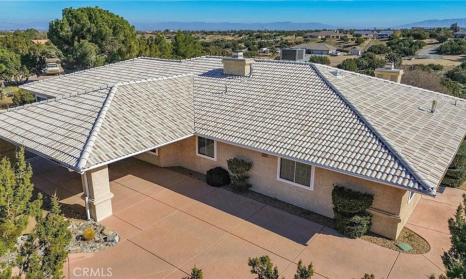 Prestigious WEST OAK HILLS . One of the High Deserts most sought after neighborhoods. Easy Access. Paved Roads. Minutes from Freeway. GREAT commuter home. PAID OFF 42- Panel Solar. Fenced and Crossed Fenced. Perfect set up for Animals. BARN / STORAGE on FOUNDATION . Horse Corrals, Goat Pins. Dog Runs and more. Mature Landscaping. Stamped concrete drive. Porte cochere 3- Car PLUS Over sized Garage with 1/2 Bath with shower . Can you say Man Cave or possible ADU conversion . 220V available. CAR CHARGER. This home has over 3100 SF Split Floor Plan and has endless possibilities for MULTI FAMILY or MULTI GEN living. Formal Living and dining area. Easily could be converted into ADDITIONAL BEDROOMS...Open kitchen to Great room with fireplace. Large Bedrooms. Master Suite Boast a cozy fireplace as well. Indoor Laundry with sink. Massive Bonus Room / Den / Game Room with private entrance. Endless options there. Whole House Fan. Covered Patio to enjoy spectacular sunrises. This is a must see.