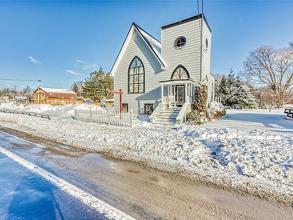 ***UNIQUE OPPPORTUNITY WITH GREAT POTENTIAL! *** 2 STRUCTURES ARE ON THIS "MULTI-USE" PROPERTY IN ADDITION TO A 2 CAR DETACHED GARAGE: A FORMER CHURCH WITH SOARING CEILINGS & STAINED GLASS WINDOWS WAS CONVERTED TO A RESIDENCE INCLUDING 2 BEDROOMS, 2 BATHS, A LOFT & WALK-OUT BASEMENT WITH ADDITIONAL LIVING SPACE. GAS DOWNDRAFT FURNACE IS 2 YEARS OLD, METAL ROOF IS ALSO 2 YEARS OLD. THIS PROPERTY INCLUDES AN ADJACENT BUILDING, "BRAIN FREEZE" WHICH WAS A SEASONAL ICE CREAM SHOP LAST OPEN IN 2022. THAT STRUCTURE INCLUDES A 1/2 BATH & LOFT. ELECTRIC HOT WATER TANK IS NEW. ALL FREEZERS & FREE STANDING EQUIPMENT ARE "NEGOTIABLE" AND SEPARATE FROM THIS SALE. THIS PROPERTY IS AN ESTATE AND BEING SOLD IN "AS IS" CONDITION. CASH BUYERS ONLY. NOTE: BRAIN FREEZE HAS BEEN WINTERIZED; PLEASE DO NOT USE RESTROOM.