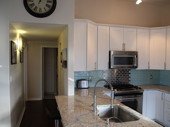 Wake up to mountain views from the large master suite. Expanded kitchen with Bianco Romano granite, ten-inch overhangs allowing counter seating, 42-inch-tall upper cabinets with crown molding. Glass and stainless steel tile backsplash. Deep sink with commercial-style faucet, soap dispenser and disposal air switch. New bathroom faucets, light fixtures, and LED ceiling fan. New carpet in bedrooms and tile in laundry area. New water heater. Short distance to the community pool and hot tub.