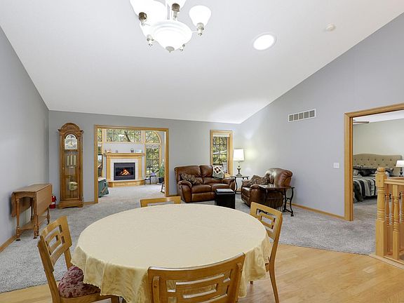 Bright and open 3BR/3BA townhome with one-level living in a private wooded setting. Enjoy 2 main floor bedrooms, open kitchen/dining/living room with vaulted ceiling which opens to a four-season sunroom (family room) w/ fireplace & access to the large deck. The kitchen boasts SS appl, granite ctrs, and granite island. There is also main level laundry and access to the 2-car garage. The lower level has multiple flex space, a 3/4 bath, large bedroom & large storage room. This level walks out to the patio and backyard space. Improvements in the past 1.5 years include a new fridge & range, new furnace & AC, new water softener, new lighting, kitchen cabinet rollouts throughout, and new closet shelving & organizers in all closets. Simply move in and enjoy this conveniently located home.