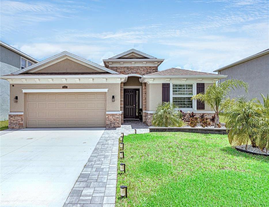 Priced to sell — one of the best deals in Epperson! Don’t miss this move-in ready meticulously maintained water-view home with an oversized fenced yard and upgrades throughout! Built in 2022, this Preferred Series 4-bedroom, 2.5-bath home offers over 2,000 sq. ft. of stylish living space. Inside, you’ll find 9’4” ceilings, granite countertops, and a gourmet kitchen with 42” staggered cabinets and crown molding. Thoughtful upgrades include remote-controlled shades on the sliders, framed bathroom mirrors, upgraded hardware, an LG Smart refrigerator, epoxy-coated garage floor, seamless gutters, and dual gated side entrances. The spacious primary suite features a soaking tub, walk-in shower, and double vanity, while three additional bedrooms provide flexible space for family, guests, a home office, or a gym. Solid block construction, hurricane-impact windows, and a Smart Home system provide comfort, efficiency, and peace of mind. Step outside to your oversized, fully fenced lot with custom landscaping and peaceful water views — perfect for both relaxing and entertaining. Living in Epperson means enjoying resort-style amenities, including the famous Crystal Lagoon with crystal-clear waters, water slides, a floating obstacle course, a swim-up bar, and year-round community events. Low HOA fees include cable and high-speed internet, with easy access to I-75, Publix, top-rated schools, dining, and shopping. At $549,500, this home combines lifestyle, location, and value — schedule your private showing today before it’s gone!