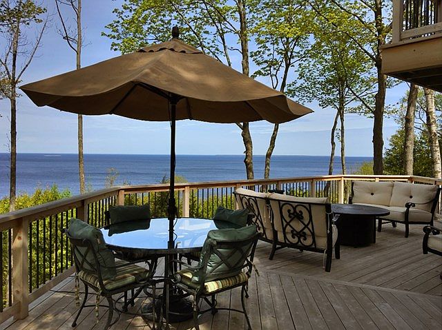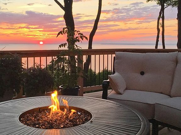 This inviting post-and-beam style home is filled with natural light and takes excellent advantage of its dramatic water view. Facing due west with an elevated perch, walls of windows and three newly constructed decks provide ample opportunity to capture nearly 180-degree views of Green Bay waters and nightly sunsets. The home's interior was recently updated to include a gourmet kitchen with Caesarstone counters, Ann Sacks tile backsplash, 36-inch Wolf gas cooktop, Subzero refrigerator and more. Additional recent updates include a renovated butler's pantry/laundry room, new furnace, painted exterior, paved driveway, and more. With attention to detail in every aspect, this character-rich home lives like new.