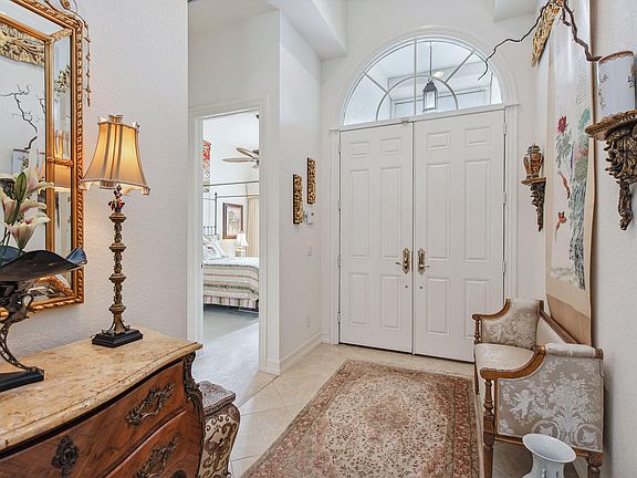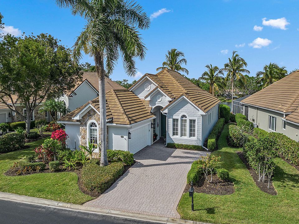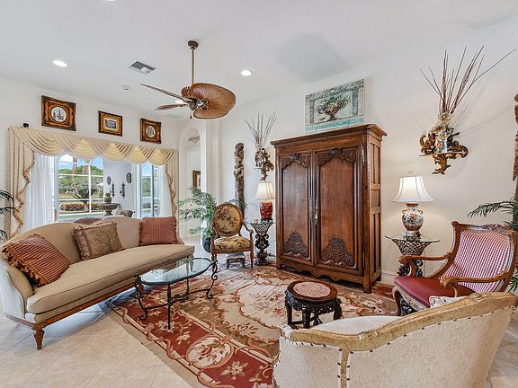 Experience refined living in the highly sought-after Mallard's Landing neighborhood of Fiddler's Creek in this exquisite three-bedroom, two-bath residence quality built by Gulf Bay. Featured in Naples Home & Design magazine, this home exemplifies timeless design, elegance, and craftsmanship. This Cape Cod-style provides a seamless move-in opportunity and an exceptional blend of comfort and style. Set against a tranquil backdrop of breathtaking lake views, this residence offers outstanding privacy and serenity. From the spacious screened lanai, enjoy unobstructed vistas of the water, vibrant birdlife, and glowing sunsets. The thoughtfully designed Bayview split-bedroom floor plan ensures comfort and privacy, while large windows and multiple glass sliders flood the home with natural light and create effortless indoor-outdoor living. The living room opens to the lanai overlooking the heated pool and spa with waterfall feature, surrounded by spacious covered outdoor areas ideal for entertaining or relaxing year-round. The pool features automation and new LED color lighting (2024), enhancing the ambiance for evening enjoyment. The kitchen combines style and functionality with premium cabinetry, stainless steel appliances including a new range, microwave, and dishwasher, and a charming eat-in breakfast area framed by windows with scenic views. A formal dining room, illuminated by an elegant chandelier, offers direct access to the lanai for convenient indoor-outdoor dining. The owner's suite is a peaceful retreat with an arched window, lanai access, and two walk-in closets. The spa-like bath features dual vanities with a full-width mirror, a makeup counter, a soaking tub, and a glass-enclosed walk-in shower. Two well-appointed guest bedrooms are situated near a full bath with a shower-tub combination, providing comfort and privacy for family and visitors alike. Additional highlights include a laundry room with cabinetry, utility sink, and new LG washer and dryer, a two-car garage with new epoxy flooring, natural light, a workbench, and shelving, plus numerous upgrades: new water heater (2021), new roof (2019), impact glass windows, electric storm shutters, custom window treatments, recessed lighting, and a security system with fire detection. Residents of Fiddler's Creek enjoy world-class resort amenities with a recently renovated clubhouse, including tropical pools, spa services, fitness center with classes and trainers, fine and casual dining, active tennis and pickleball programs, bocce, sauna, steam room, and a vibrant social calendar. Optional memberships are available for golf, beach, and marina privileges, further enhancing the luxury lifestyle. Located in a gated community with miles of sidewalks for walking, running, or cycling, this home offers easy access to downtown Naples, Marco Island, shopping, dining, and pristine beaches. Low transferable flood insurance provides added peace of mind. CDD bond paid in full.