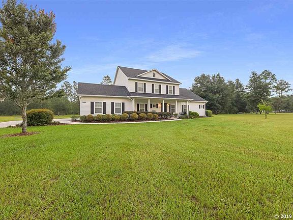 Enjoy the quiet countryside life inside this immaculate 4-bed, 5.5-bath custom-built home in the beautiful Hawks Ridge community. With 4,387 SQFT of living space, this property offers a gorgeous open floorplan that boasts plenty of room and comfort for the whole family. Enjoy dinner parties in style in the incredible kitchen that provides a 9-foot island, double ovens, stainless steel appliances, and separate walk-in pantry space with secondary refrigerator. The space opens nicely into both the living room and dining area. The master suite shines with a large bedroom with french doors that open to the patio. The breathtaking master bath includes a walk-in shower with double shower heads, large garden tub, his-and-hers sinks, and a gigantic walk-in closet. Upstairs, the kids quarters maintain separate play and media rooms with an adjacent bathroom. Laundry room, mudroom, dedicated office, and children's nook under the stairs round out the home nicely. Settled on 3.5 acres of land, enjoy watching the sunset from the front porch, or throw the frisbee around in the backyard. Peaceful and quiet, enjoy all the comforts of country life while being 10 minutes from downtown Alachua and Jonesville. Invisible fence for dogs will remain.