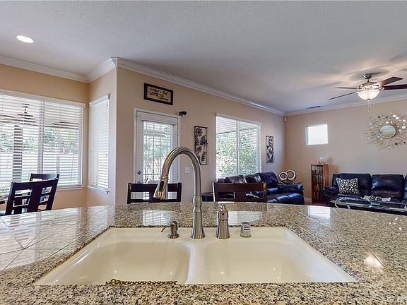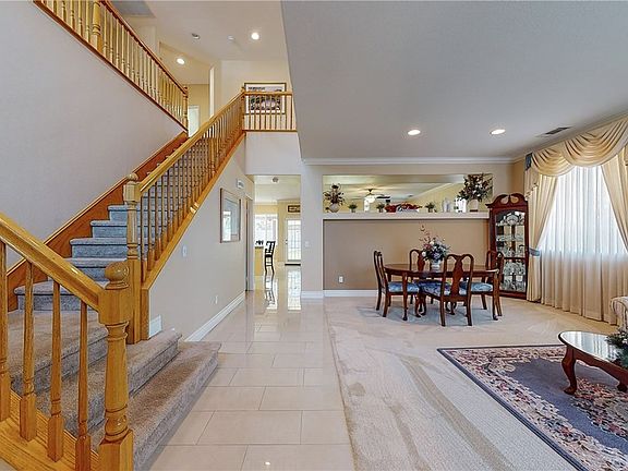 Don't miss this move in condition, highly desired Orange Crest Home. This home boasts high ceilings, interior and exterior painted this year, wifi thermostats, and downstairs crown moulding. Formal Living and dining room. One bedroom and bath downstairs. Kitchen features granite, marble tile floors, lots of counter/ cabinet space and a large island. Kitchen is open to family room and has a walk in pantry. Family room very comfortable with lots of natural lighting and a gas fireplace. Upstairs laundry. Huge master suite with dual closets. Master bath has dual sinks, separate vanity, soaking tub and separate shower. Upstairs office/ multipurpose loft has built-in workstation. Excellent entertainment house with custom backyard patio including alumawood patio cover with fan, Asian pear, cherry, gala apple & lemon trees plus 5 palm trees. Pebble-tec front walkway/landing. Upstairs heating & AC replaced in 2019, Water heater replaced 2019. Within walking distance to Orange Terrace Park with Fields, Community Center, Library, Playgrounds,Courts, etc. Community has top rated schools, including Martin Luther King High, with no HOA and low taxes.