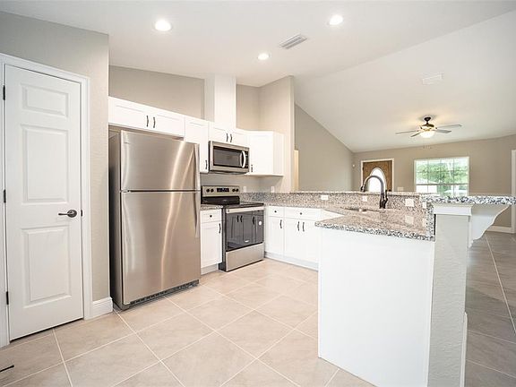 MOVE-IN READY HOME AVAILABLE! Located in the family-friendly neighborhood of Orange Blossom Hills this 3BR/2BA home is within arm-lengths of The Villages, Ocala, shopping, dining, schools, and much more. Situated on a spacious .22 acre CORNER lot this home offers you the freedom you have been wanting with NO HOA nor DEED RESTRICTIONS. Newly(2023) constructed of stucco and block you can rest assured you’ll have years of enjoyment without the headache of maintenance and cost. Featuring 1,514+/- sqft under air this 3BR/2BA home consists of an open floor plan that features a BONUS Florida room, tray/vaulted ceilings, tile/carpet flooring, a WHOLE house security system, an irrigation system, 2-car garage, INSIDE utility room, and covered back patio. Overlooking the living room the kitchen features stainless steel appliances, white-shaker cabinetry with soft-close hardware, and stunning granite countertops. The spacious master suite features a tray ceiling, a walk-in closet, and the master en-suite with his/her sinks, granite countertop, shaker cabinetry, and a seamless glass-enclosed walk-in shower. The spare bedrooms are spacious with a shared hall/guest bath and linen closet. From the curb appeal to the backyard, you'll fall in love with everything this home offers as the owner spared no expense. So don't wait and schedule your private tour today before it's gone!