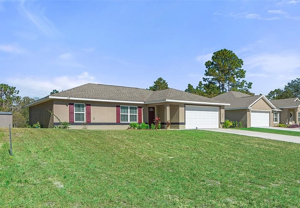 GREAT Location! Situated just moments away from Route 484 and within easy reach of 175 and State Road 200, this custom-designed home, constructed with stucco over block, was finalized in 2022 and still retains the fresh appeal of a new residence. The home has 3 bedrooms, 2 bathrooms, and a convenient attached 2-car garage. The kitchen showcases exquisite cabinetry and comes fully equipped with a refrigerator, range featuring a hood, and a dishwasher. The flooring combines elegant tile and plush carpeting, while the residence benefits from high-efficiency windows. What sets this property apart is its pristine location - it faces a greenway in the front and backs onto one in the rear, ensuring no neighbors in close proximity. This home is ready for immediate occupancy and has been impeccably cared for. Opportunities like this are limited, so don't delay - schedule your viewing today!"