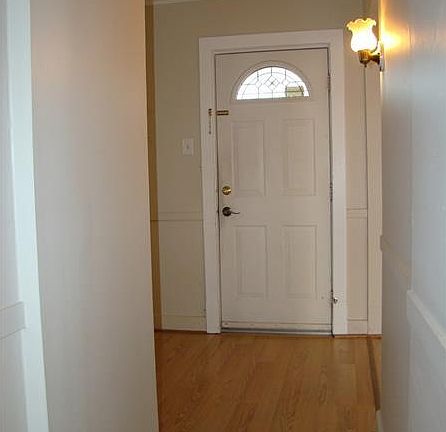 ADORABLE 2-story with gorgeous hardwood floors, large living and dining room, nice sized kitchen with access to yard/smaller deck, full bathroom on first floor, cozy bedrooms with closet space off hall, master with built-in full bath, large basement with additional bedroom/playroom. Plaster walls, fully equipped kitchen, washer and dryer, solid wood interior doors (except master). Three points of exterior access from rear of home... Basement, slider off dining room to large, freshly painted deck, and kitchen, nice covered front patio, 2 oversized off street concrete parking spaces, storage shed under deck, large terraced rear yard that backs to trees