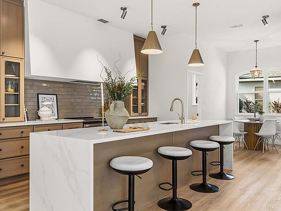 Welcome to the experience of high-end living at 847 Ashbrooke Ct, a fully reimagined designer residence in the heart of Heathrow. Recently completed with an interior designer, this four-bedroom plus office, three-bath split-plan home delivers the finest in modern luxury at a price point below comparable custom remodels. Step inside to find soaring 12' to 10' ceilings, an abundance of natural light from new energy-efficient windows, and open-concept living spaces that radiate architectural sophistication. Entertain and unwind around the modernized fireplace, formal dining area, or flexible family room—all centered around a D’Nook-designed gourmet kitchen with soft-close cabinetry, integrated premium appliances, custom breakfast nook, architectural lighting, and a signature Venetian plaster hood. The oversized waterfall quartz island creates a stunning focal point for both casual meals and memorable gatherings. Every surface showcases designer-level detail—from quartz countertops and luxury vinyl plank flooring to custom cabinetry and wood accents—mirroring finishes seen in larger, higher-priced properties. The expansive owner’s suite evokes spa-like serenity with a freestanding soaking tub, dual walk-in closets, abundant natural light, and a bespoke bath retreat. Step outside to nearly one-third of an acre, featuring a resurfaced pool (2025), dedicated pool bath, and lush outdoor space ideal for entertaining. The Two-Car Garage offers an independent side entrance and dedicated space for a Golf Cart—a rare feature highly sought after within Heathrow. Major updates ensure long-term peace of mind, including a newer roof (2022), AC systems (2025), custom windows (2025), and water heater (2025). Enjoy the exclusivity of 24-hour manned gate security, access to community parks and playgrounds, and optional Heathrow Country Club memberships offering golf, tennis, fitness, and resort-style amenities. With effortless access to I-4, SR-417, and the Wekiva Parkway, this home perfectly balances serene luxury with urban connectivity.