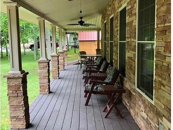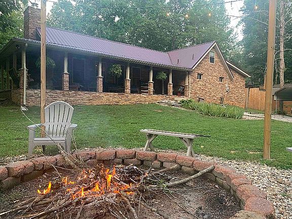 This fully furnished, turnkey PRIVATE lake home is perfect for entertaining, featuring concrete/steel steps leading to a seasonal PRIVATE DOCK and sleeping arrangements for up to 13 guests. Meticulously maintained with many upgrades, the property boasts a newer metal roof, hardwood flooring, gorgeous kitchen has granite and stainless. 2 wood burning fireplaces, composite decking front and back including screened porch, ice machine along with a freezer, updated electric and other modern amenities, this home is both cozy and stylish. The property also includes a fire pit, carport, vaulted ceilings, and a second kitchen, as well as two sheds for ample storage. Currently used as a private vacation home and Airbnb rental, this one-of-a-kind property offers great income potential. 7 Lots owned total on both sides of the road.