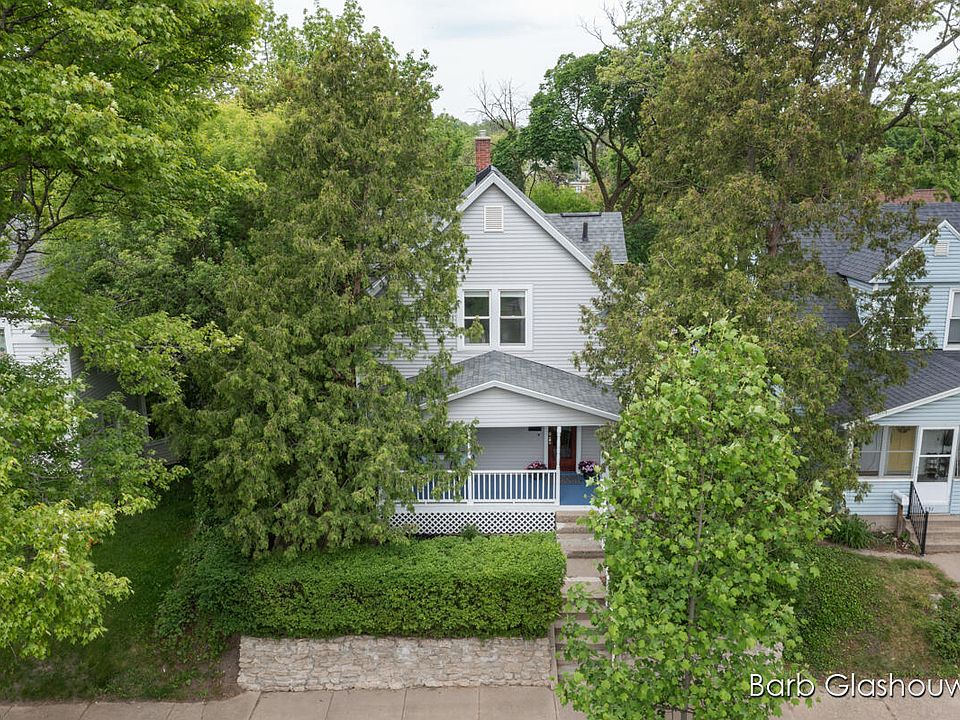 Built in 1905, this Classic, Charming 3 Bedroom, 1-1/2 bath well-maintained home offers unique historical elements such as high ceilings, classic door hardware, beautifully preserved oak trim, staircase and floors yet has been modernized over the years for today's living. Located in ''Mid Town'', this move in ready home is within blocks of Corewell Health Main campus and downtown. Many restaurants and pubs only 2 blocks away including The Friesian, Logan's Alley, GFS Grocery, Tropical Smoothie Cafe and Martha's Vineyard Coffee and Bakery! Easy access to highway offers quick commute to airport, 28th Street and all of West MI. Updates include new roof, newer furnace, A/C, water heater, new windows, updated kitchen with granite and white subway tile backsplash, renovated ½ bath. Newer vinyl siding, new detached garage with heat and full insulation. All current paint colors. Extra deep/walk in closets in bedrooms with new closet systems. Custom Built-in workbench in basement and garage. House hardwired with ethernet. Private backyard. See Home Feature list for more details. Open House Sunday, 1-3pm. Offers due 9am on Monday, May 20.