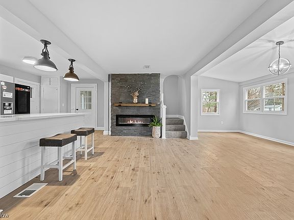Move right in! Large primary bedroom on 1st floor, completely remodeled, updated bath. Open concept kitchen features new cabinets, countertops, farmhouse sink, new stove, range hood and refrigerator. Fresh paint and fixtures throughout, waterproof Pergo flooring. Oversized 2 car garage on large corner lot.