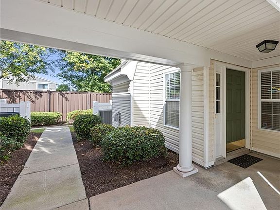 Step into this light-filled end-unit condo with soaring cathedral windows and an airy, open feel. Featuring 3 spacious bedrooms, 2.5 baths, and a 2-car garage, it blends comfort with sophistication. The main-floor primary suite and nearby laundry offer everyday ease, while the living area boasts electric shades, a cozy fireplace, and seamless flow to a private, fenced patio garden, great for relaxing or entertaining. Enjoy resort-style amenities including 2 pools, an exercise room, and a playground. Ideally located near Town Center, military bases, and I-264, convenience is yours.