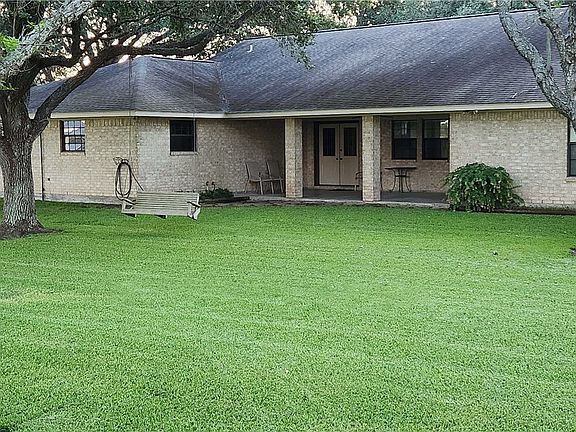 Beautiful Country Estate on 20.98 acres, well-located close to Victoria. This custom-built home features an oversized garage, a covered front porch to catch those sunsets, and a large covered patio. The updated interior complements the well-thought-out floor plan. The foundation is reinforced with 14' bell-bottom piers during construction. Beams are spaced 10-12' apart, and a 4" slab is built to withstand generations. The living room has a wood-burning fireplace. The interior is freshly updated. Double-pane windows add to the efficiency. The kitchen has a center island and plenty of cabinets and countertop space for meal preparation and serving. Outside, you will love all the buildings. There is a large equipment/livestock barn with 3,840 sf, power, water, and compressed air lines. There is an additional large shop with a 2,200 sf concrete floor, power, water, air, and tiedowns. The 416 sf well house makes for additional storage and workspace. The land is as functional as beautiful. There are 44 Live Oaks, including 32 providing a double-sided tree-lined entrance. There are 26 mature shade trees in the yard, providing natural cooling and storm protection. The 9 Mesquite trees provide shade for livestock. As an addditional feature, you get a 20-24 vine vineyard for winemaking, juice, or jelly. The raised garden bed has established perennial asparagus plus ample space for seasonal vegetables. There are fruit and nut trees that include six producing pecans (nine varieties, peaches, figs, satsuma oranges, apricot, persimmon, and bananas. The land is fertile and productive, with approximately 20 acres of ag-exempt pasture/cropland. For 38 years, it has consistently produced profitable hay crops of either alfalfa or clover and sorghum-sudan annually. Multiple barns provide ample hay and equipment storage, supporting livestock, farming, or expanded agricultural ventures. This is the perfect home, agricultural operation, or simply enjoying a peaceful country lifestyle.