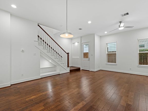 Private gated communityCozy carpetHigh ceilingsWood floorsRecessed lightingStainless steel appliancesSpacious open floor plan