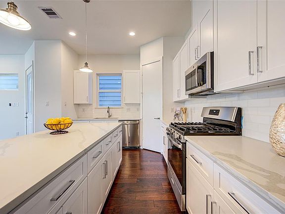 High ceilingsEngineered wood flooringRecessed lightingLight and brightStainless steel appliancesFlex spaceSpa like restroom