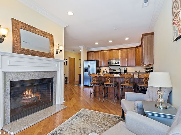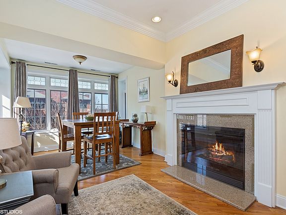 Spacious, renovated top floor vintage, with an open floor plan, bright and quiet, in the heart of Evanston, close to shops, dining, trains and lakefront. Very open and inviting layout; large kitchen with 42" cherry cabinetry, granite tops, and SS appliances plus great counter space and a breakfast bar. Large rooms, great closet space, washer/dryer in unit, gas fireplace, central AC, hardwood floors & high ceilings. Vintage charm with newer windows, rear porch for grilling and a common gated courtyard area for summertime. Flexible floor plan. Living room can be a guest bedroom/home office with french doors. Master bath features dual sink vanity and second bedroom has a door to east facing balcony. Leased parking spot behind the building will transfer to the new owner if desired. Additional storage in the basement. See the floor plan!