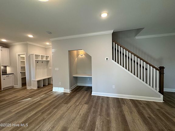 Covered Front Porch leads you into foyer with high wainscotting and guest bedroom to your side. This bedroom provides a spacious closet and access to downstairs guest bathroom. Great Room with electric fireplace. Kitchen/Dining Combo that boasts granite counters, large center island, and huge walk-in pantry + access to back covered porch. All other bedrooms upstairs. At the top of the stairs you'll find a large loft space, dedicated laundry room and a guest bathroom. 2 oversized bedrooms with walk-in closets. Owners Suite spans the width of the home and has trey ceiling, 2 walk-in closets, double sink vanity, soaking tub and walk-in shower!